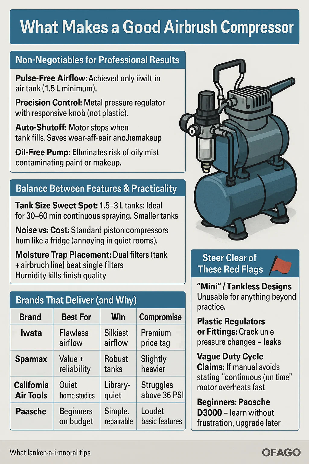 Moisture Trap Placement: Dual filters (tank + airbrush line) beat single filters. Humidity kills finish quality.