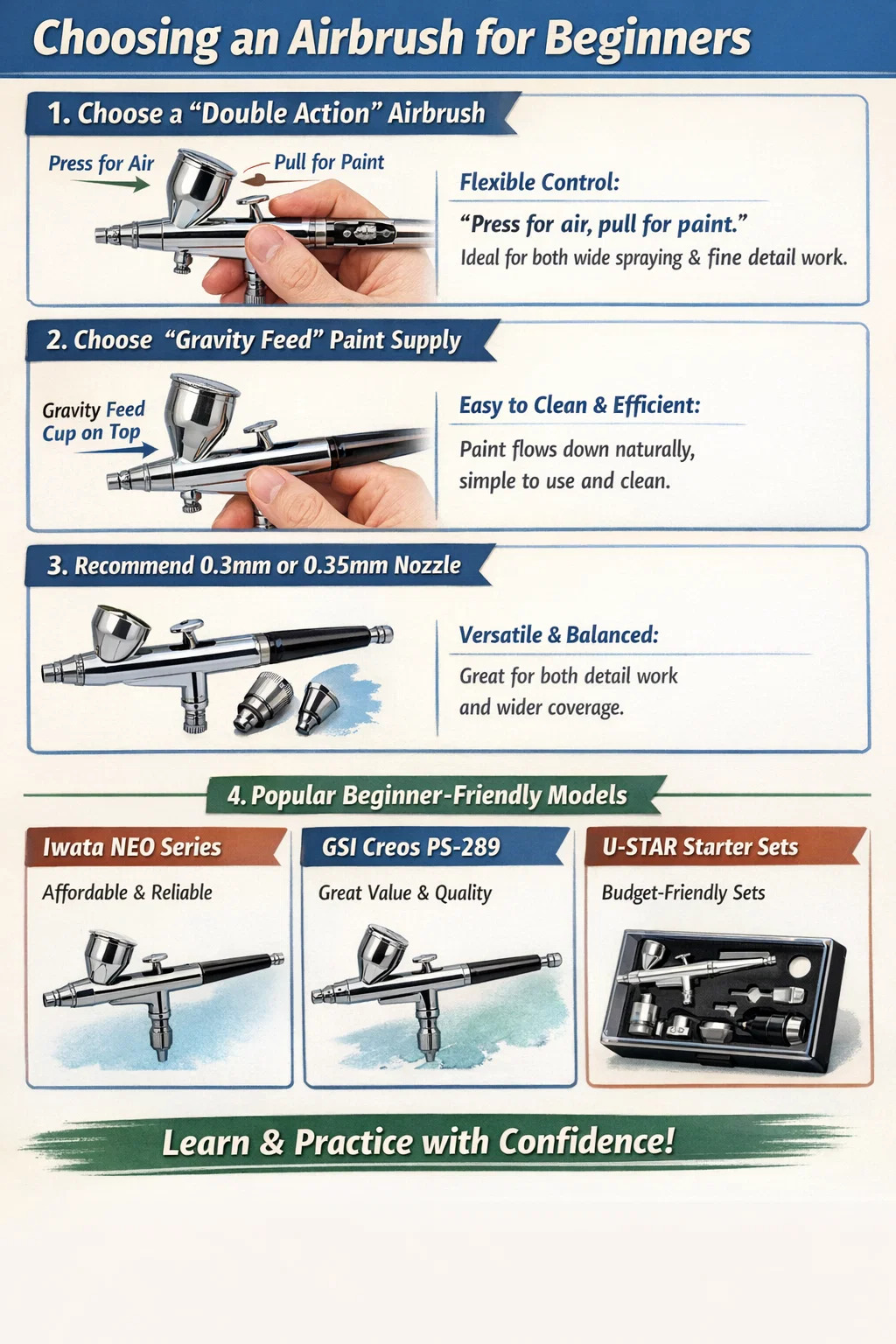 Here are some practical tips for choosing an airbrush for beginners: