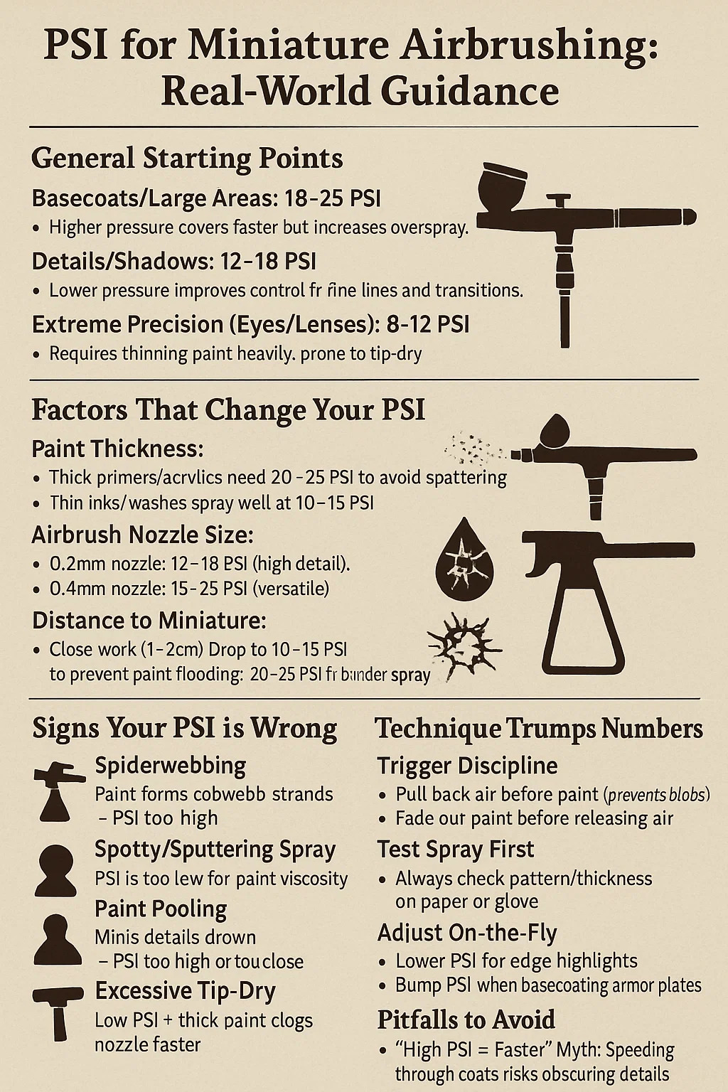Zenithal priming (15–20cm): 20–25 PSI for broader spray.
